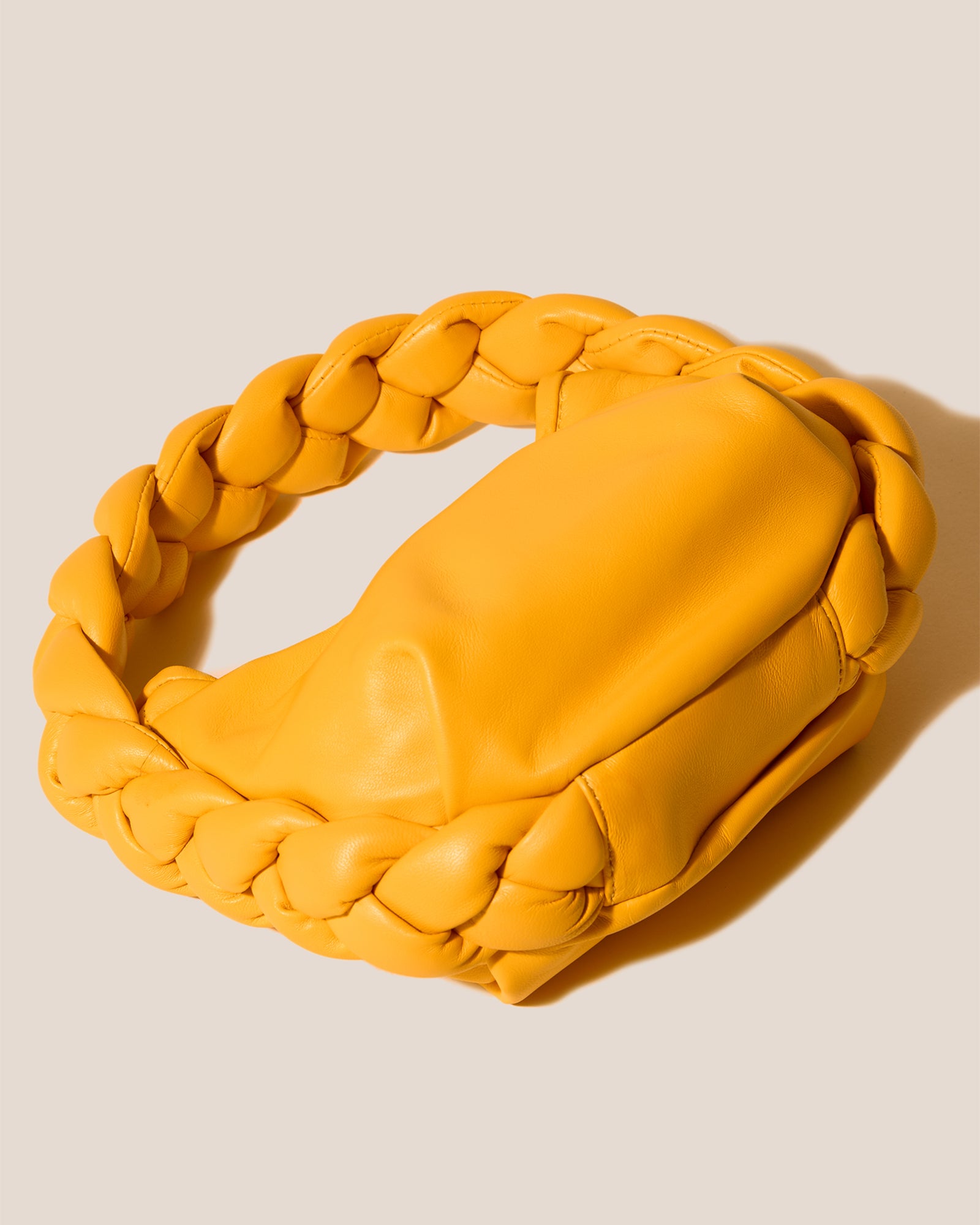 Mini bag with braided handle detail and a slim adjustable strap. Can be worn crossbody or carried by hand. Crafted in supple lambskin and lined with organic cotton.