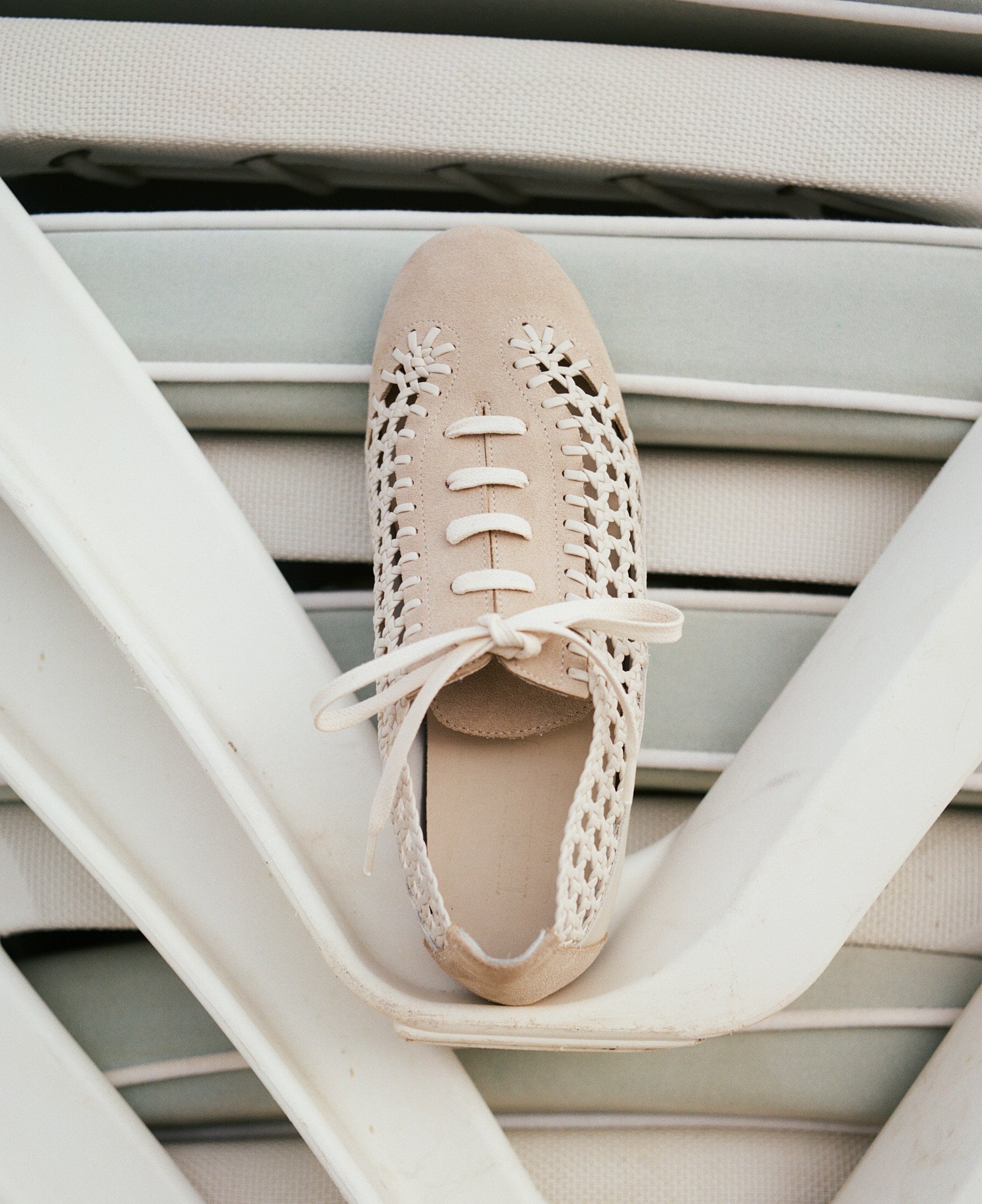 Woven lace-up sporty shoe, crafted in supple lambskin and calf suede.